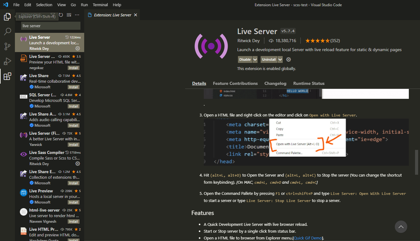 node.js 환경에서 개발을 하면 localhost 서버를 열 수 있지만 프론트엔드 개발에서 더 즉각적인 시각 기능을 눈으로 바로바로 확인하고 싶을 때 Live Server 기능을 사용하면 매우 편리하다. 실시간 서버로 HTML, CSS, JAVASCRIPT로 작성된 프론트엔드 개발 결과물을 바로 확인할 수 있다.