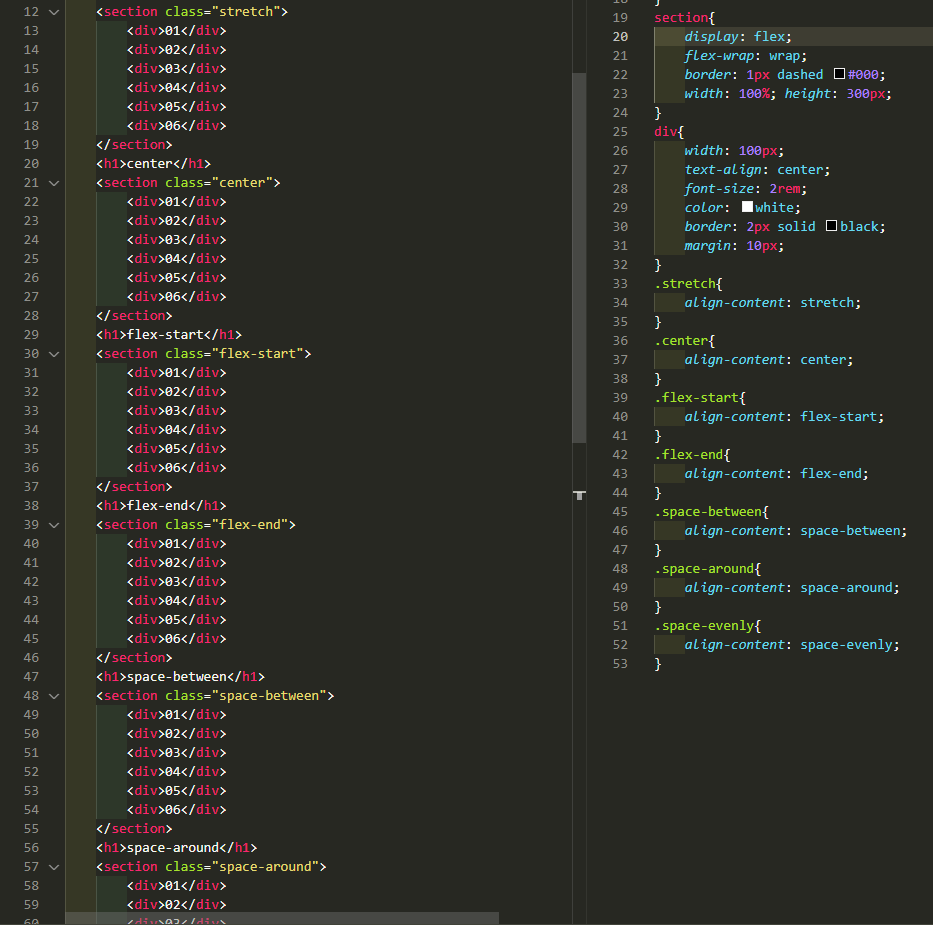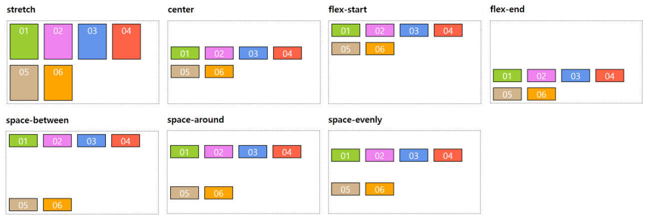 align-content는 flex-wrap과 관련된 속성으로 아이템이 flex-wrap에 의해 두 줄 이상으로 배열되었을 경우의 배치를 컨트롤하는 속성이다.